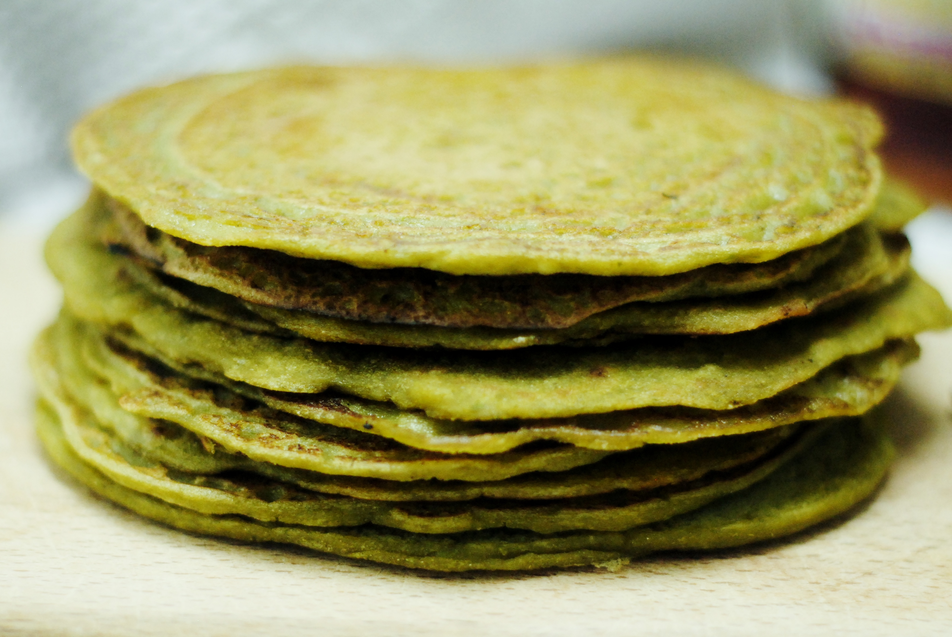 Dit is een recept voor gezonde, hartige en vullende pannenkoeken. Je kan ze met iets zoets eten als ontbijt of origineel dessertje, maar ze zijn ook héérlijk als wraps, gevuld met salade, zelfgemaakte pesto of guacamole, chilisaus, gewokte groenten, en ga zo maar door. Deze pannenkoekjes zijn snel en makkelijk te maken, en dat allemaal zonder eieren, zuivel of tarwemeel. De warmoes zorgt niet alleen voor de bijzondere smaak maar voorziet jou en je tafelgenoten ook van vitamine C en ijzer. Een ideale manier dus om ongemerkt groene groenten in het dieet van je huisgenoten/kinderen/lief te smokkelen. Als je geen warmoes vindt, kan je spinazie gebruiken voor dit recept.