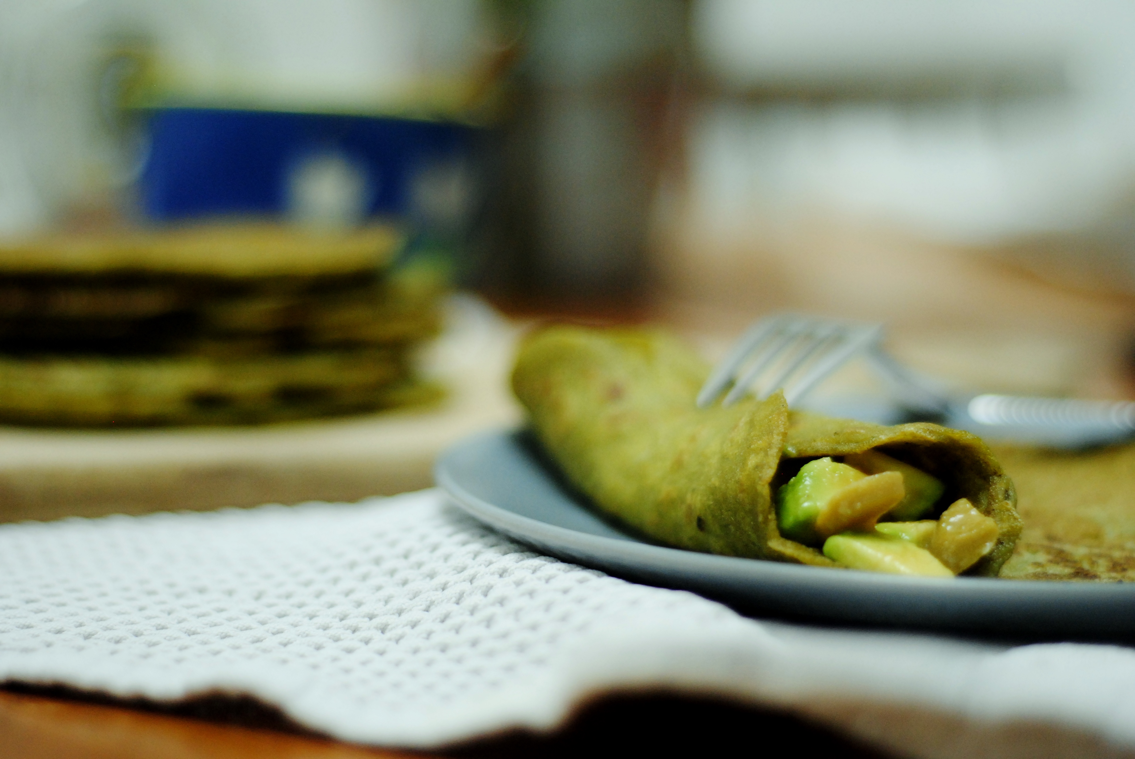 Mijn favoriete manier om deze pannenkoekjes te eten is ’s middags, met stukjes avocado, zout en een heleboel limoensap. Je kan ze ook gebruiken als basis voor een avondmaal met gewokte groentjes, salade of curry. Of rol ze op met guacamole of pesto, snij in stukjes en serveer als aperitiefhapjes of tussendoortje.