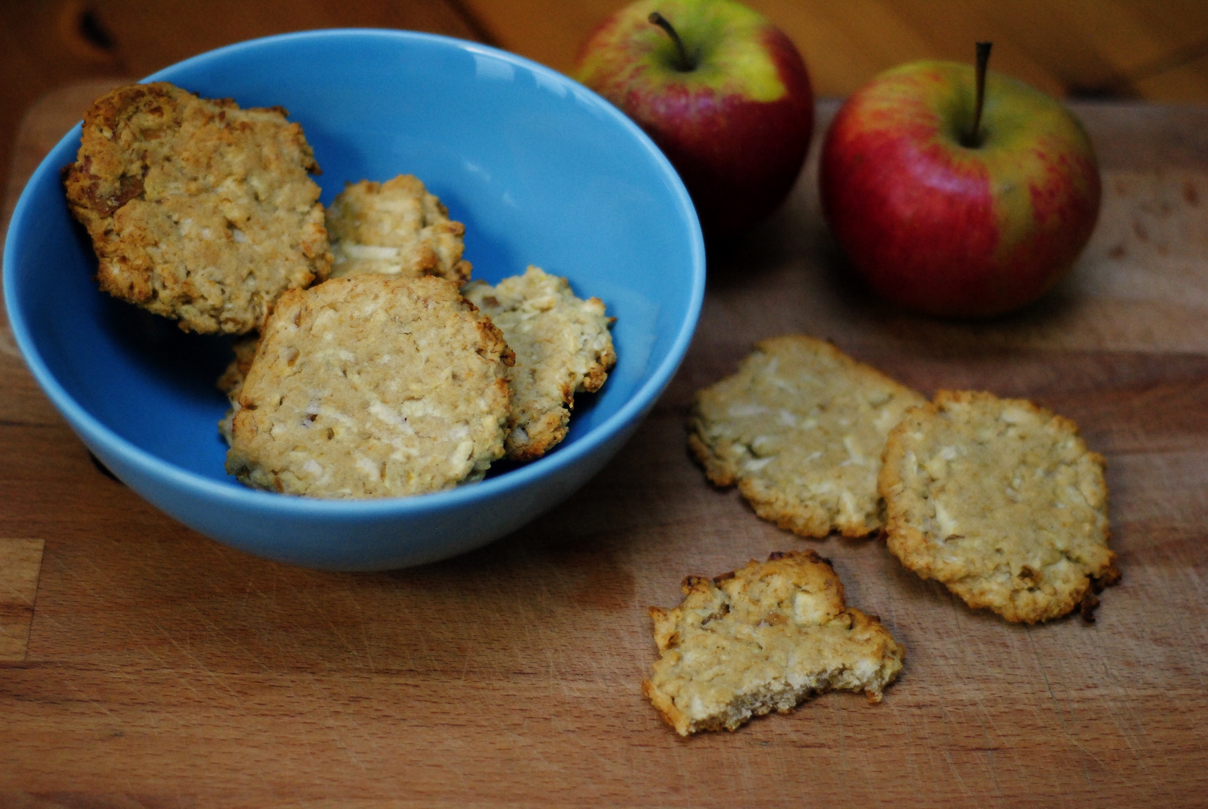 Op sommige dagen heb ik die onbedwingbare drang om koekjes te bakken. Is het nostalgie naar het koekjesbakken dat we als kinderen zoveel deden, is het verlangen naar de huiselijkheid van een huis dat ruikt naar koekjes in de oven, of is het gewoon een drang naar een oude en oh zo vertrouwde snack? Ik weet het niet. Maar als die drang daar is, dan moet ik eraan toegeven. Oven aan en experimenteren met deeg – want het laatste jaar heb ik niet één koekjesrecept gevonden dat me aansprak. Soms loopt zo’n experiment ronduit slecht af, soms oké, en heel, heel soms ook beter dan al mijn verwachtingen. Dat is het geval met deze appelkoekjes. Ze zijn lekker én de textuur is zalig! Ik denk dat ik eindelijk mijn favoriete koekjesrecept voor een tijdje gevonden heb.